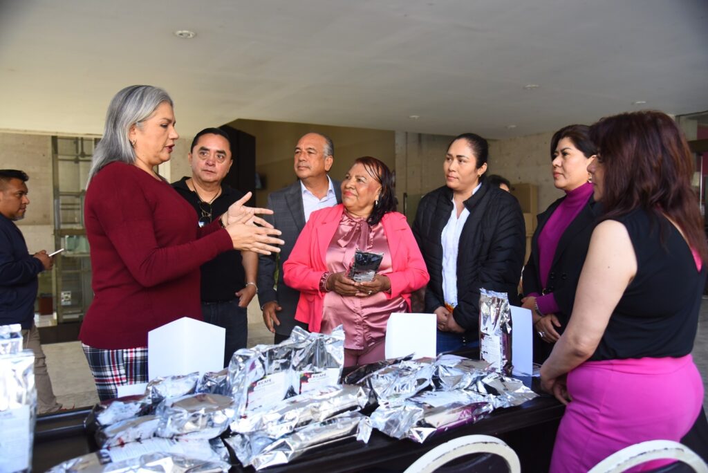 Xalapa, Ver., 27 de febrero de 2025.- La presidenta de la Comisión Permanente de Promoción Comercial y Fomento a la Inversión, diputada local Daniela Flores Barnils, inauguró en el Palacio Legislativo de Veracruz la expoventa de café, pulseras, licores, salsas, recetarios de comida típica, pinturas, bordados y tejidos, que ofrecen productores de los municipios de Paso del Macho, Ixhuatlán del Café, Tomatlán, Atoyac y Chocamán y de RIHE Fundación, asociación civil para la atención de niños con discapacidad.