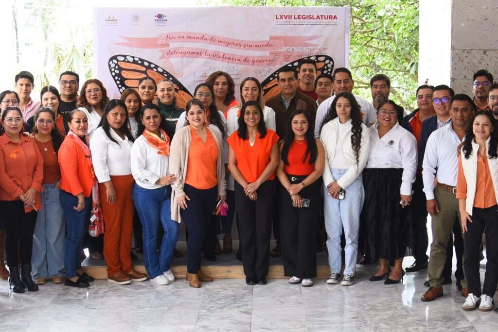 Al concluir las intervenciones, trabajadoras del Poder Legislativo inscribieron diversas frases que representan un llamado a crear conciencia en contra de la violencia de género y además expusieron, en una lona con una figura de mariposa, pensamientos y anhelos, “símbolo de transformación, cambio y renacimiento”.